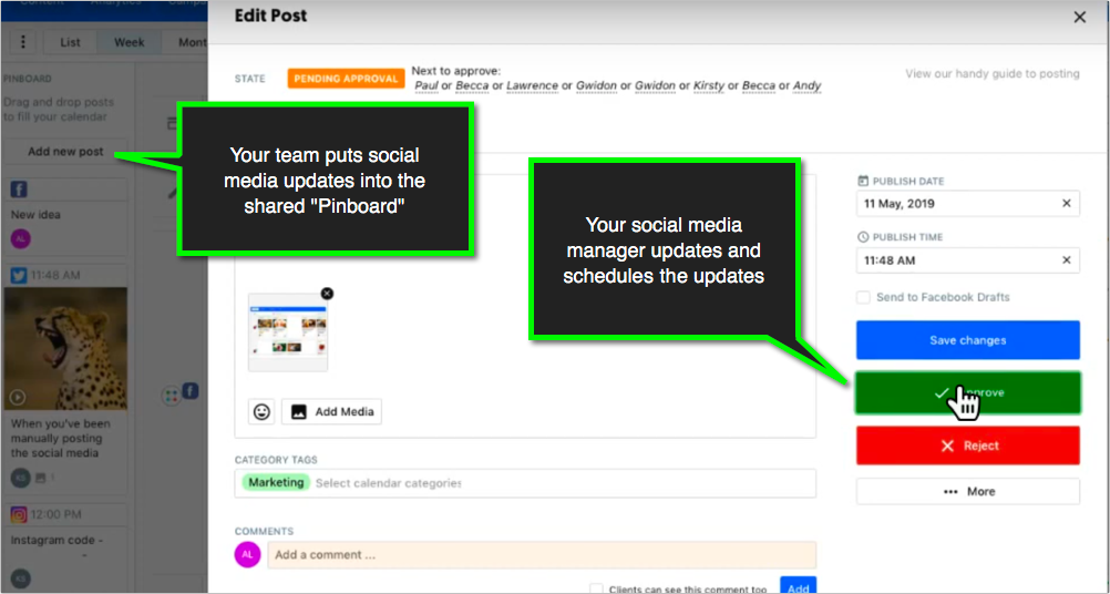 ContentCal is one of my favorite marketing collaboration tools, giving everyone in your company access to the brand’s marketing calendar and allowing everyone to create social media posts as well as contribute ideas to upcoming lead generation campaigns.
