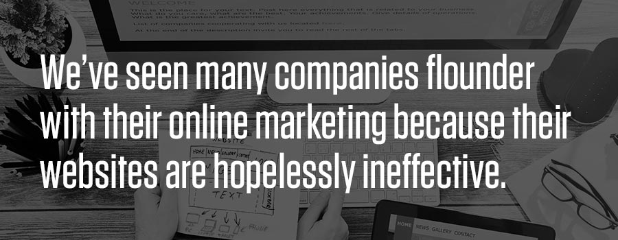 This is a really important question to investigate. A lot of companies contact us because they want a new website, but after a bit of conversation and analysis, realize they really don't need one. On the other hand, we've seen many companies flounder with their online marketing because their websites are hopelessly ineffective — and these companies don't recognize the problems or appreciate the severity.