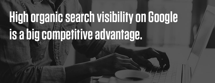 High organic search visibility on Google is a big competitive advantage. It can take new competitors months or even years to catch up, and then only with a big investment. If your company stands out among existing competitors in rankings for important search terms, your competitive advantage is even more significant.