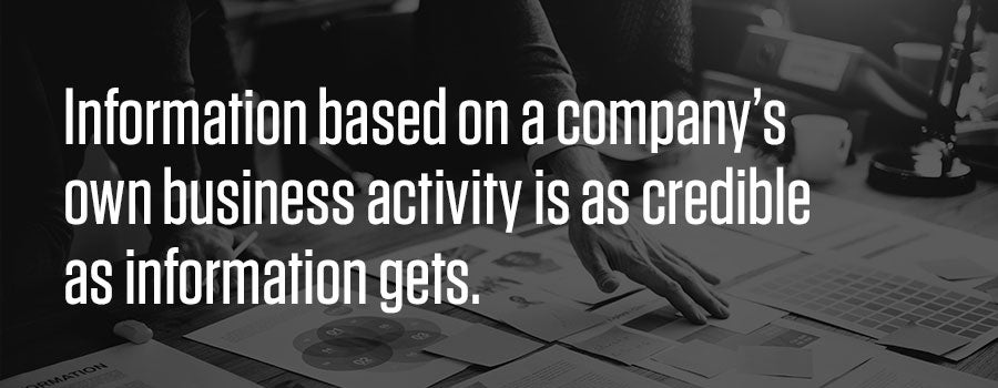 Information based on a company’s own business activity is as credible as information gets. In your organization, what information do you have that would be of interest to other people in your business? For instance, do you have things such as …