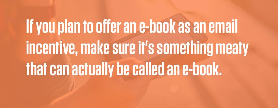 If you plan to offer an e-book as an email incentive, make sure it's something meaty that can actually be called an e-book.