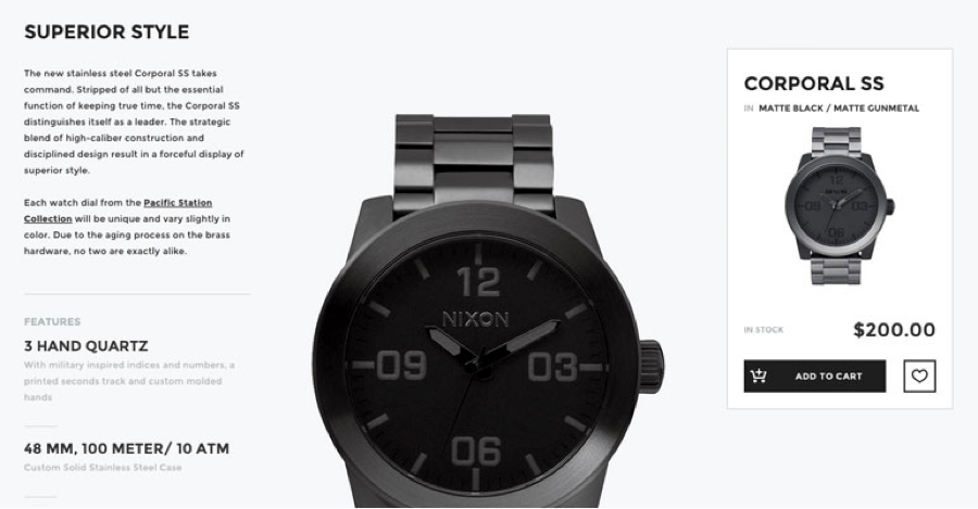 - Interactive design features — changing colors of the watch, rollovers showing features of the product — get the user engaged and interested.